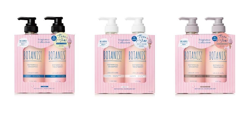 ボタニカルヘアケアセット サクラ&バニラの香り(モイスト・スムース・ダメージケア) 各3,080円(編集部調べ)